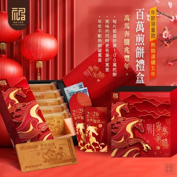 2026新年 福記小食堂-萬馬奔騰百萬煎餅禮-贈提袋+紅包袋(限量) - TW251121S02 《24/11截單,預計2月上旬到港》